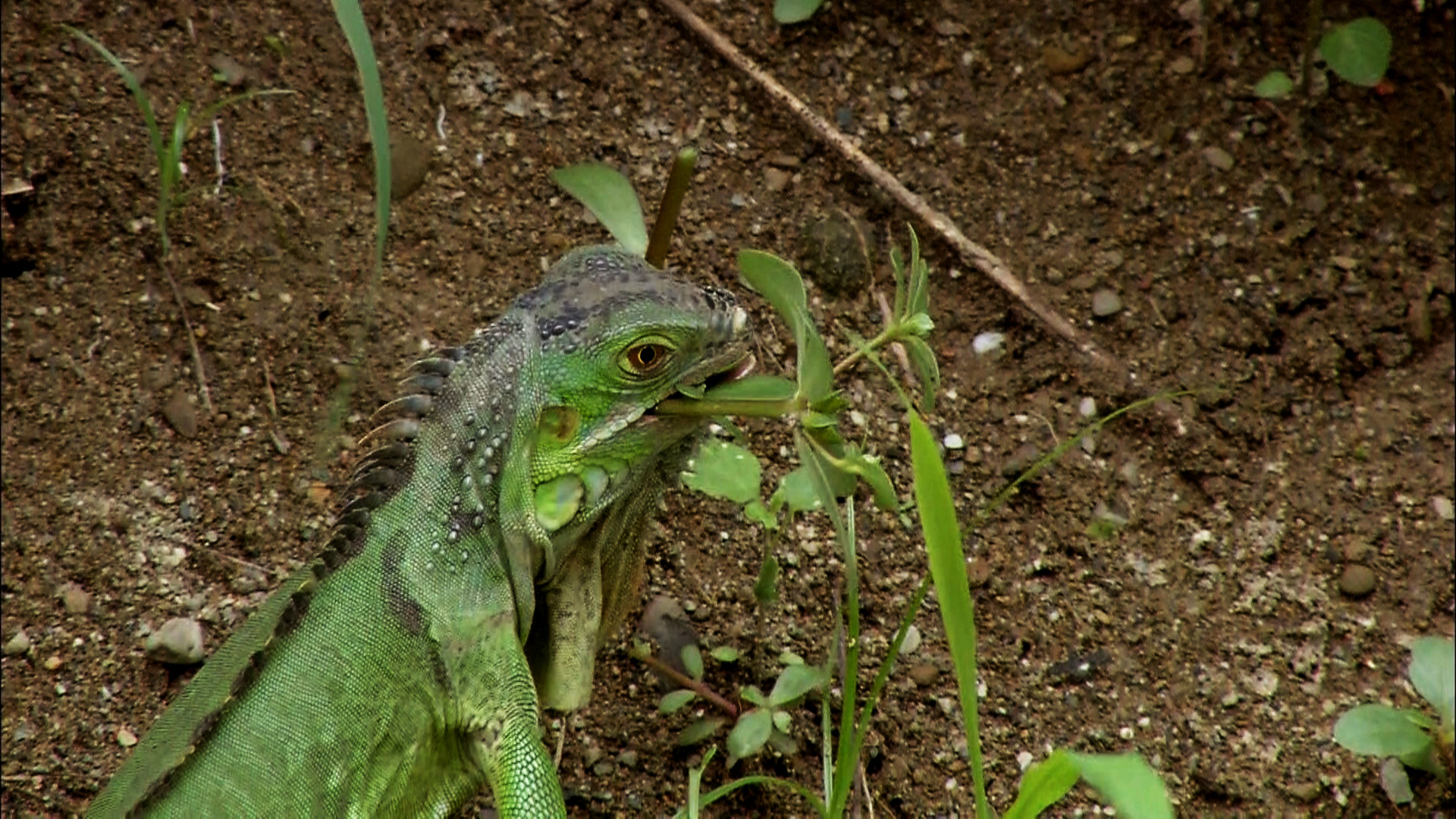 被棄養的綠鬣蜥適應南台灣氣候並建立族群,成為外來入侵種,牠們喜歡吃低海拔常見的構樹的葉子, 也會進到農地吃農作物。