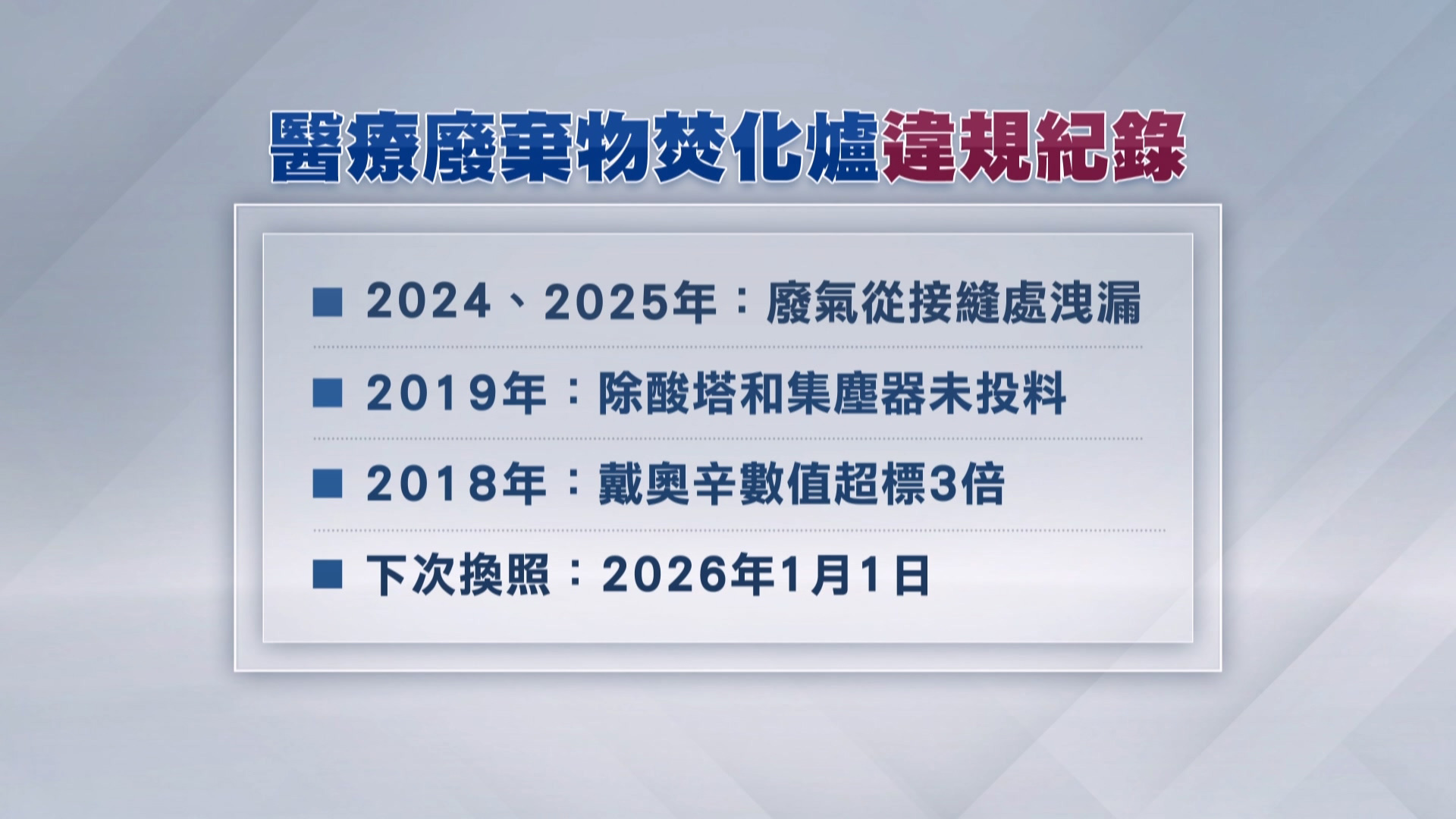 其中2024與2025年都曾發生排放黑煙,以及焚化爐接縫處洩漏,製程廢氣未經後端防制設備處理,直接逸散至空氣中。2019年則因除酸塔消石灰設備損壞,未能即時投料;集塵器活性碳槽空料,導致防制設備無法正常運作。
