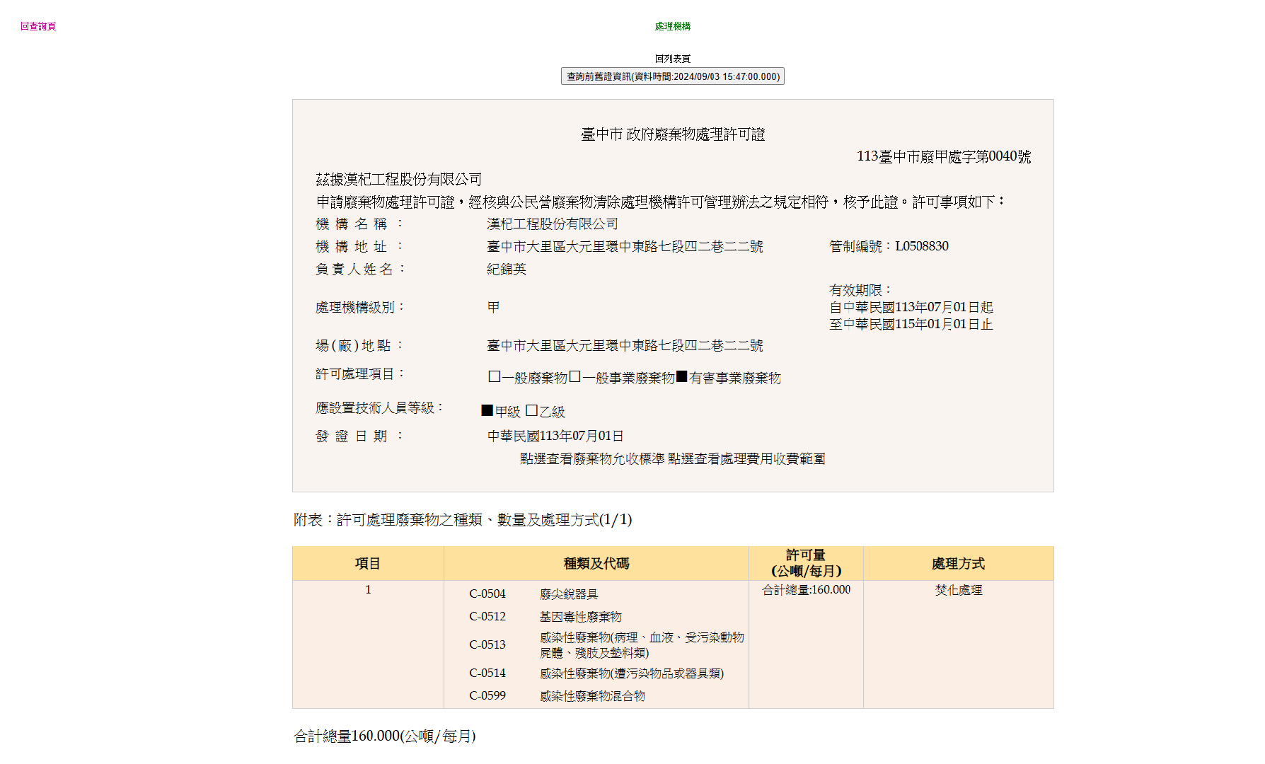 漢杞公司的廢棄物處理許可證即將在2026年1月1日屆期。資料來源/環境部資源循環署