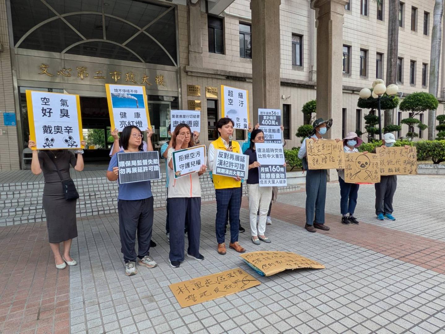大里GO爭氣陣線發言人鄒明諺表示,漢杞焚化爐在台中大里已經20多年,2019年承諾五年內遷廠,光近3年來違規達36次,累計裁罰僅400萬元,根本無法遏止違法,如今遷廠作業遙遙無期,居民擔心還會跳票。