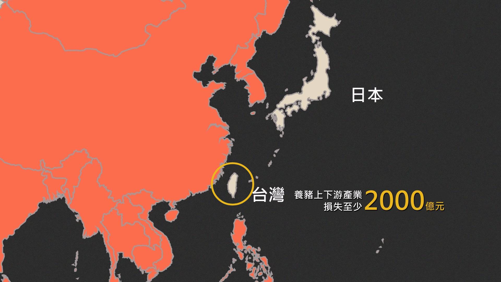 全球已經有83個國家地區有非洲豬瘟,原本亞洲只有日本和台灣不是疫區,如果臺灣爆發大規模非洲豬瘟疫情,可能會嚴重打擊相關產業,粗估可能會造成養豬上、下游產業至少 2000 億元以上的損失。