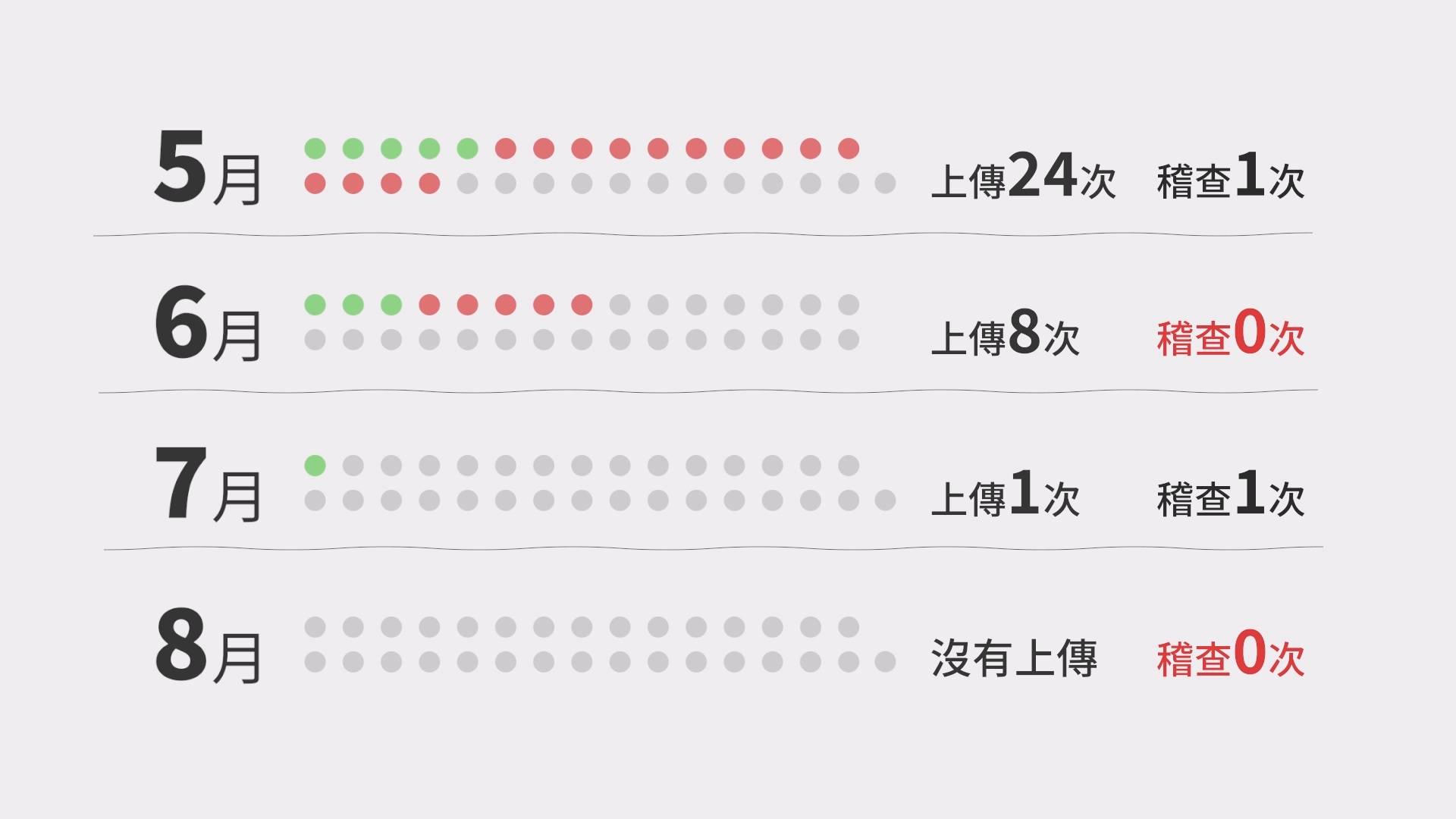 為了降低非洲豬瘟入侵的風險,政府已經明確規定廚餘需要高溫蒸煮,達到中心溫度90℃以上,至少1小時,才能用於餵養豬隻。但是從這次案例可以看到,廚餘端出現連環防疫漏洞。首先案例場未依規定每日上傳蒸煮廚餘照片,而且多次補傳照片,五月上傳24次,六月上傳8次,七月上傳1次,八月沒有上傳。