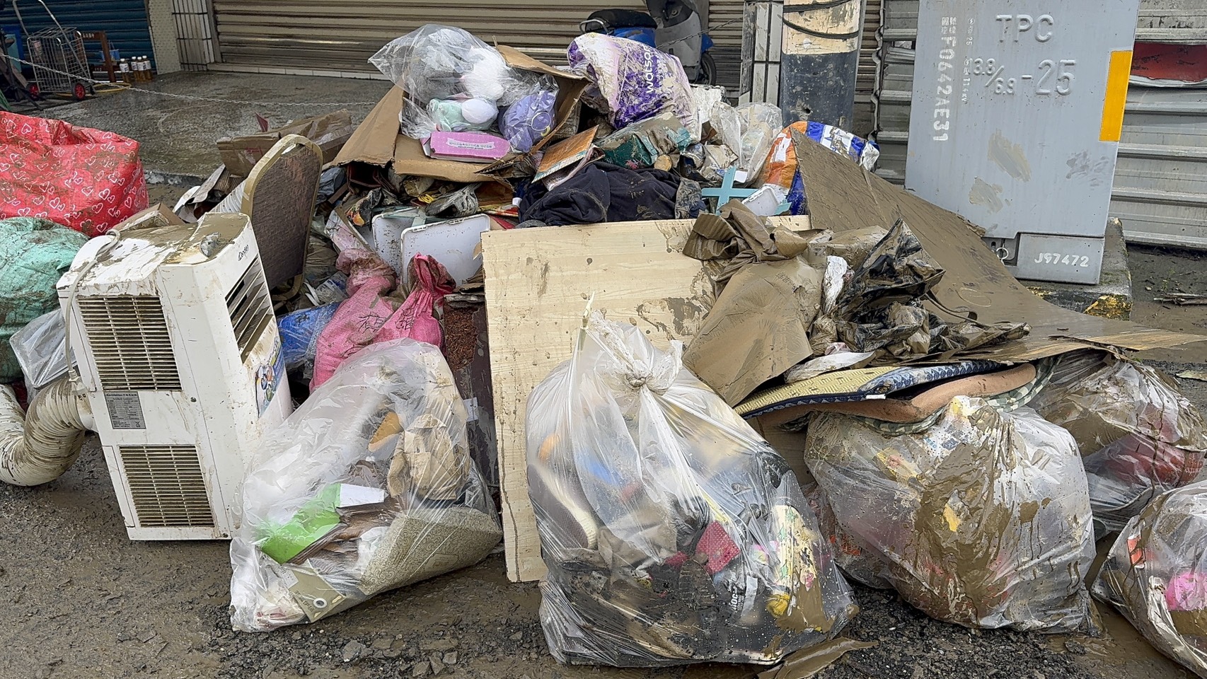 12日趁著短暫放晴,宜蘭蘇澳地區居民急忙將泡水家具一一搬出,大量廢棄家具暫時堆置在路旁,加上淹水拋錨的車輛,導致交通混亂,國軍和重機具也出動協助居民清理家園。這次的受災,宜蘭縣政府統計災損戶數約有1100戶,大樓地下室則是有23處進水,持續抽水中。