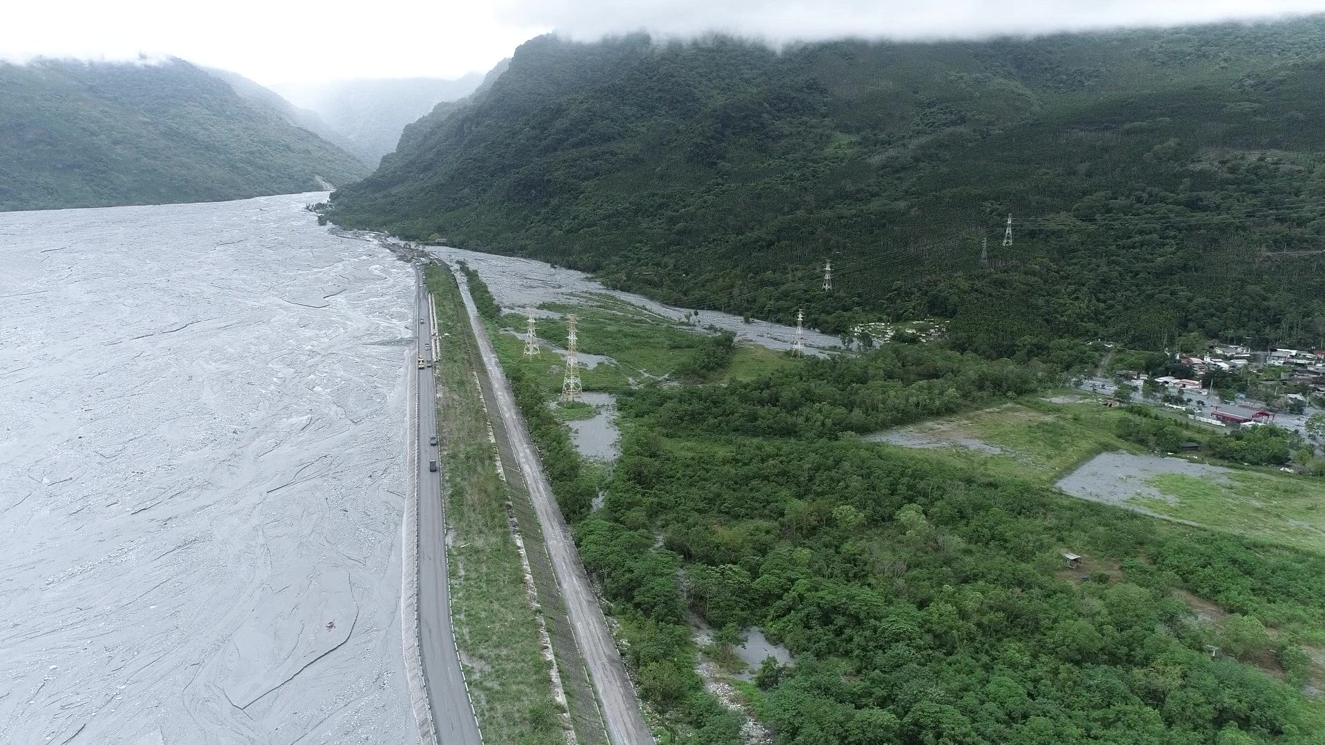 大水在萬榮國中前,溢流到台九線,大量泥土覆蓋路面,造成道路中斷,同時掩埋鳳林農地。明利村村長林萬成表示,當初河床淤高,擔心大水從堤防末端的缺口沖入,就一直提醒政府。中興大學水土保持系終身特聘教授陳樹群表示,馬太鞍溪上游發生大面積崩塌,大量土石進入溪流,河床不斷墊高,造成兩岸都有溢流風險。