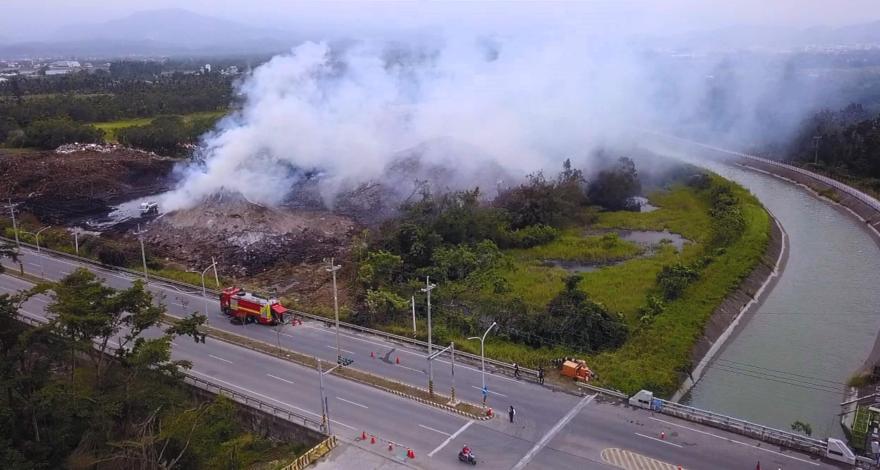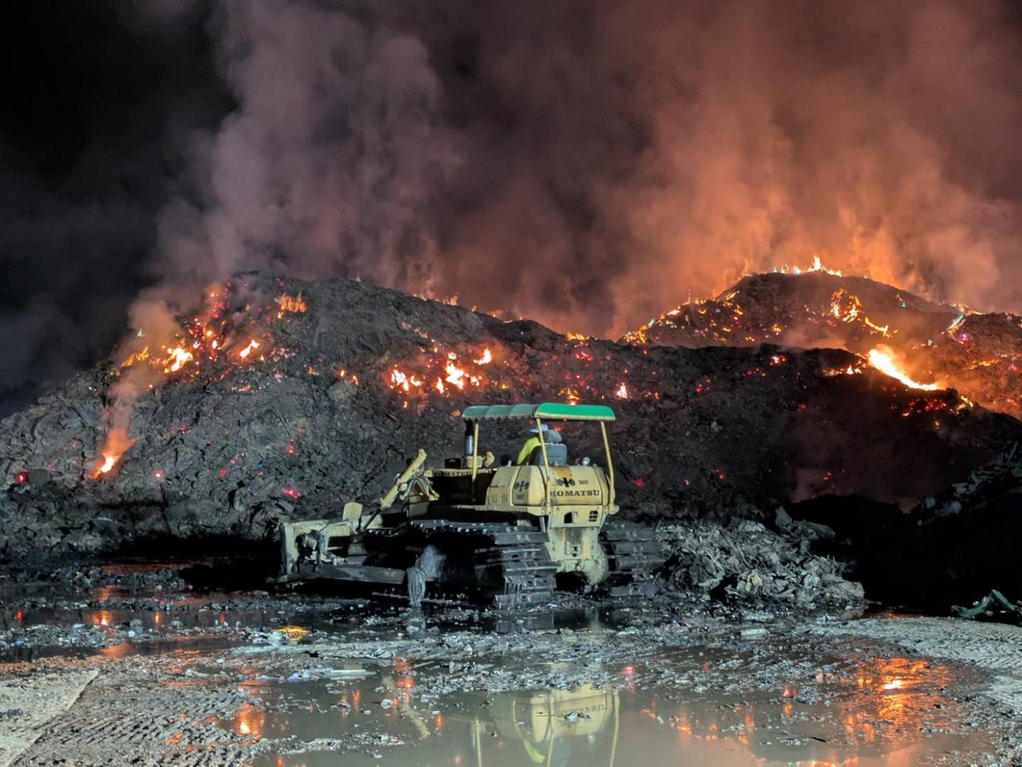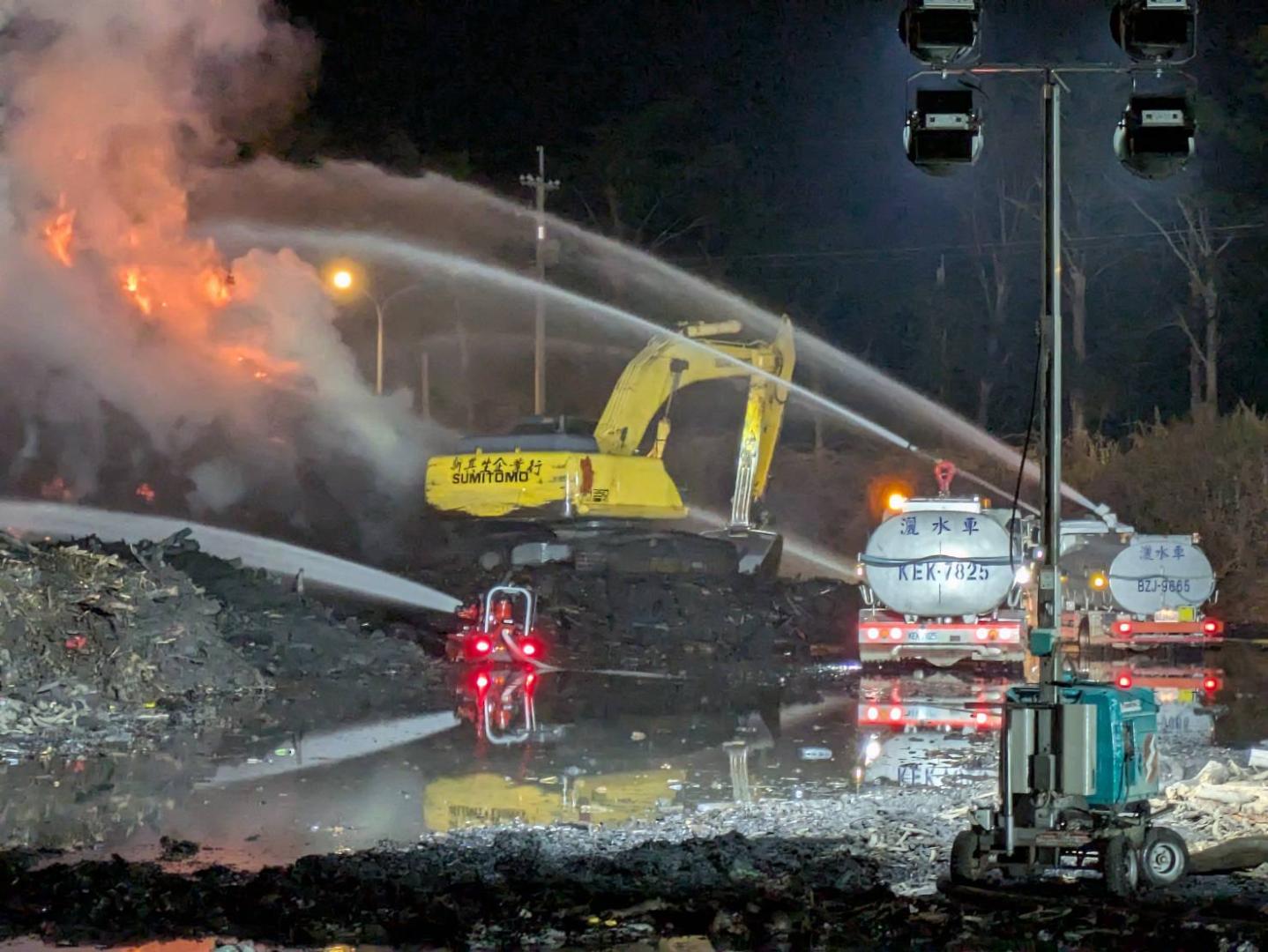 火場目前有三台以上的灑水車,以及兩台怪手正在作業,由怪手分層挖掘底下高溫之處,再由消防人員灑水降溫,採取24小時輪班制,台南環保局表示希望在十天內完全熄滅火勢。
