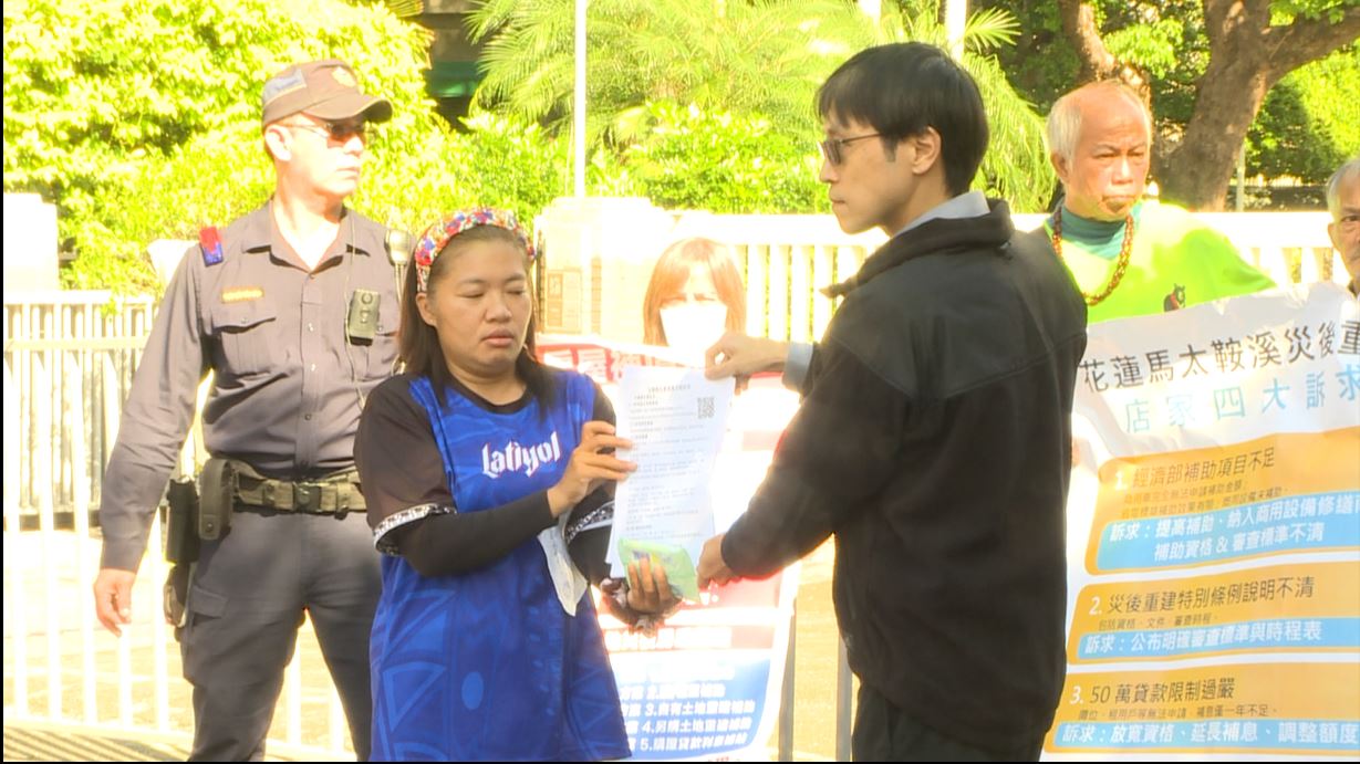 立法院今日上午通過270億「馬太鞍堰塞湖災後重建特別預算」,不過就在同時,花蓮縣光復鄉重災區的災民再度到行政院前陳情,他們表示11月19日曾到行政院遞交,由1200戶受災戶共同連署的陳情書,卻遲遲沒有收到行政院的回覆,行政院是否不想理會災民的血淚?