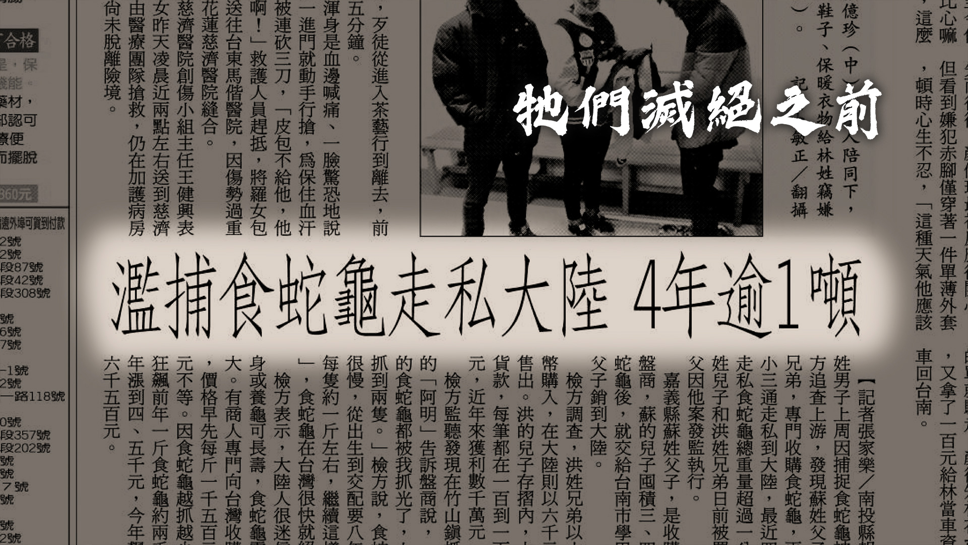 台灣如何從野生動物「進口國」,轉變為野生動物「出口國」?在20多年前,台灣民間開始大量盜獵原生食蛇龜,走私到中國市場去。本集將從保育、執法、社會面向去探究,從「有利可圖」的單純動機,又如何演變成幾近是全民運動的盜獵亂象。