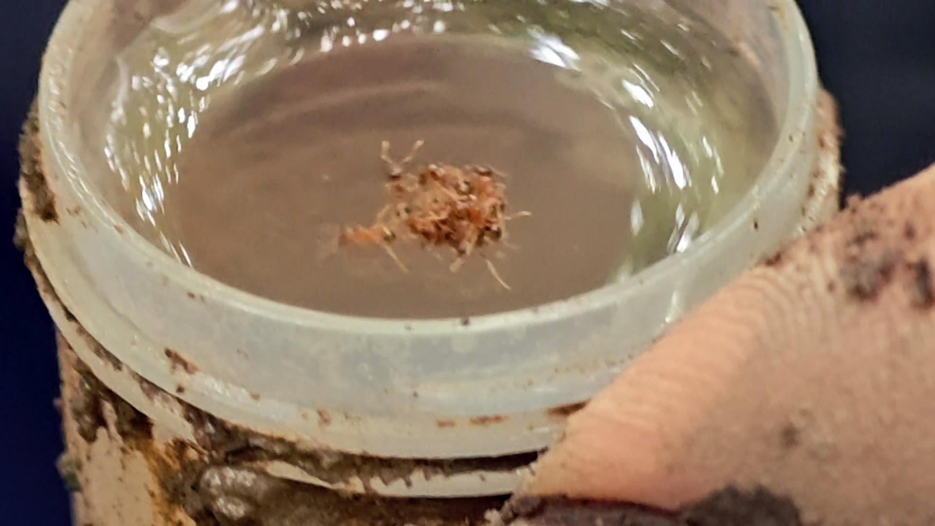 在大雪山,孫敬閔老師的穿山甲研究團隊,來到一處農場,設置螞蟻陷阱,研究穿山甲的食源。經過一星期後,取出陷阱試管,收集捕獲昆蟲,帶回實驗室分析。同時收集落葉,放入布袋中,過濾出昆蟲,研究螞蟻種類。