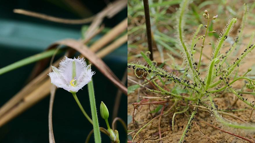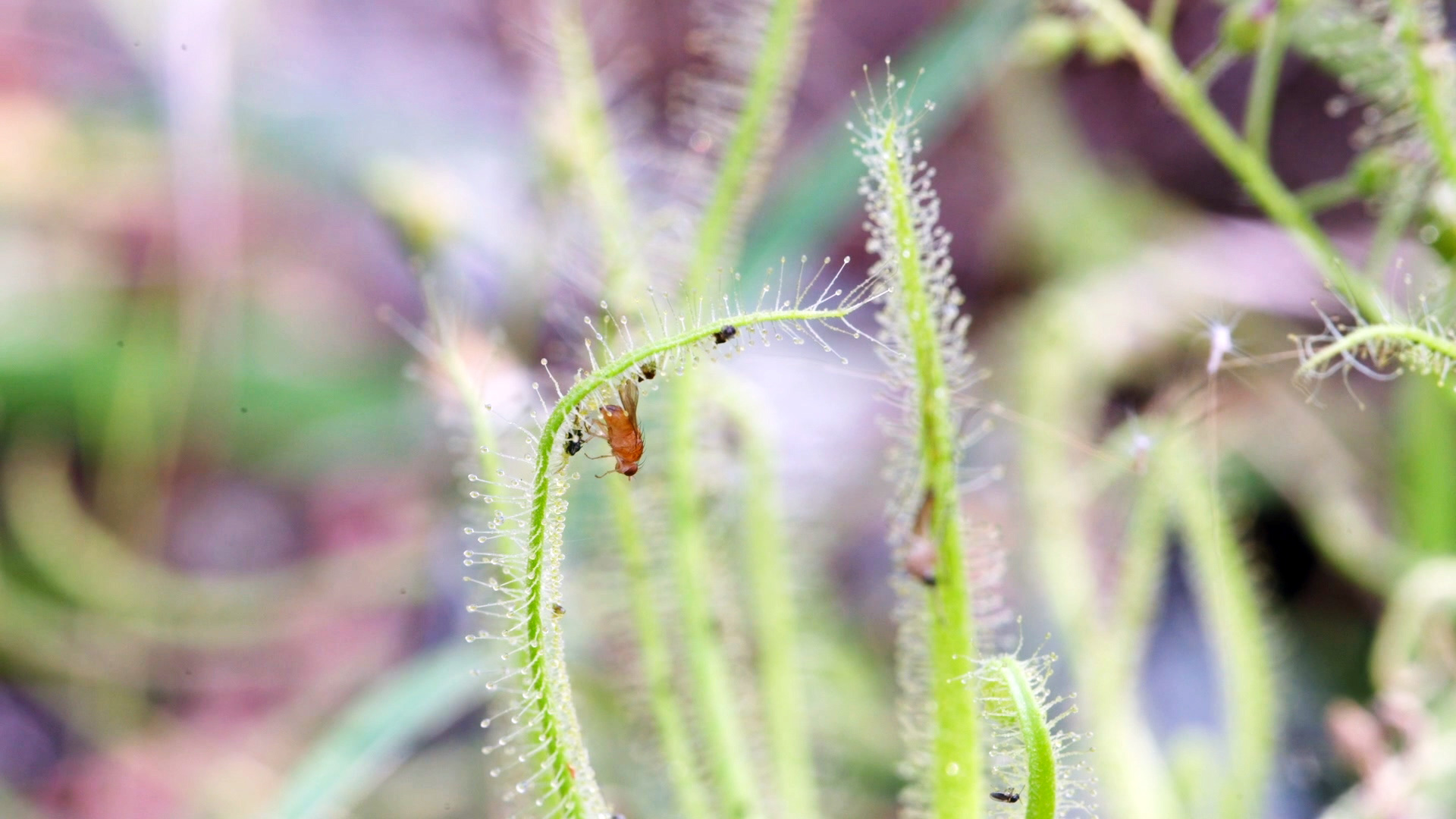 台灣食蟲植物長葉茅膏菜和寬葉毛氈苔,喜愛生長在低海拔濕地,靠著特化後的葉片捕捉昆蟲攝取含氮養分,帶有露珠般黏液的獨特外觀,是它們的捕食神器。