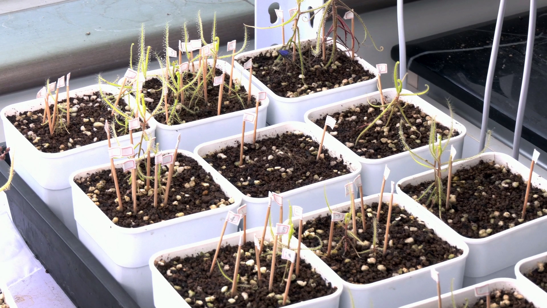 中興大學國際農學碩士學位學程教授趙國容與中興大學森林系學生黃毓芯,先在實驗室研究長葉茅膏菜種子的發芽條件,例如光照、溫度、濕度與泡水等影響,接著再移往戶外田區測試,希望採取「保種引入」的方式在田間復育。