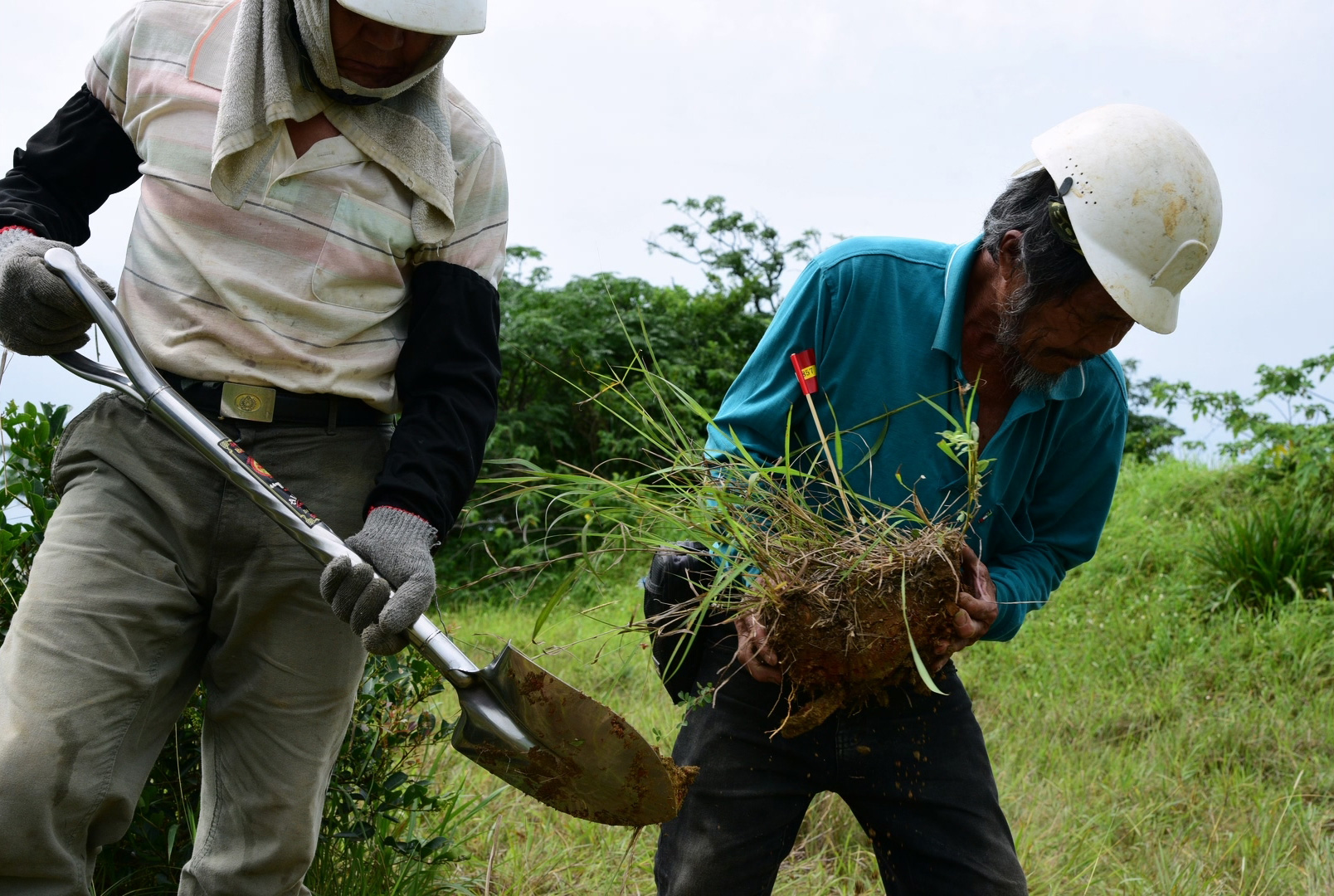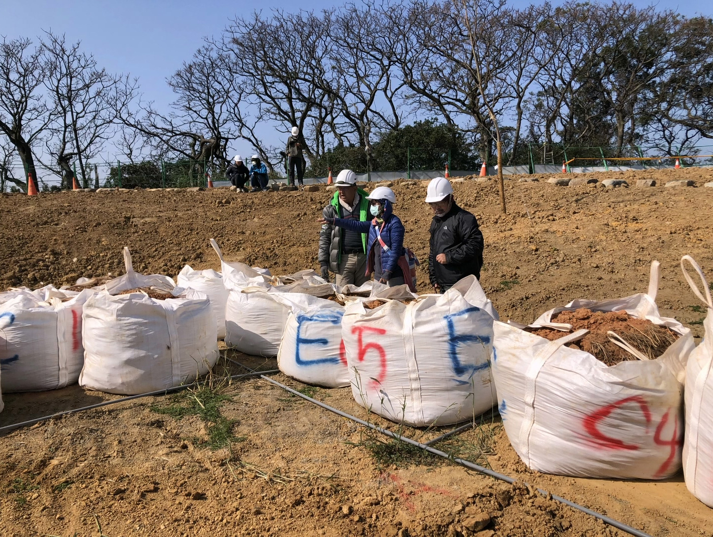機堡是以前空軍基地停放大型飛機的地方,首先工程團隊為避免土壤潮濕,必須先在地面鋪上30公分的一般土壤,再蓋上防水隔離,最後再將含有種子的土壤覆蓋上去,同時間,這些土壤也在2024及2025年移到桃園3處復育區進行種植。