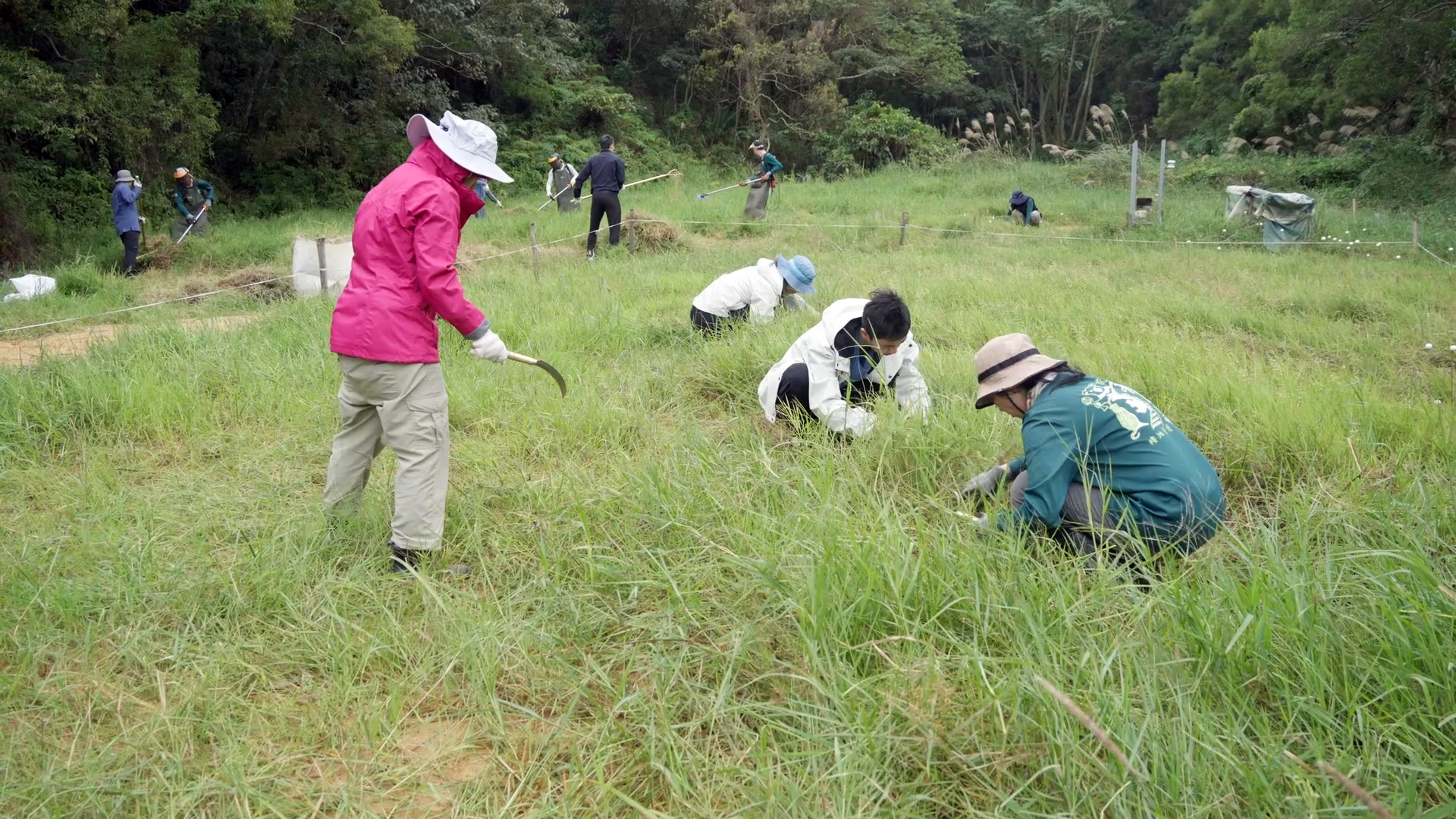 夏秋季節,是生長旺盛的時候,會再以剪刀進行細部除草修剪,去除競爭物種;到了冬季,這群植物完成播種後會死亡,此時再進行圈護區外割草,為的是避免其他禾本科等強勢植物趁勢生長,並且進行翻土,等到來年春雨澆灌,就能讓種子發芽,完成下一代的繁衍。