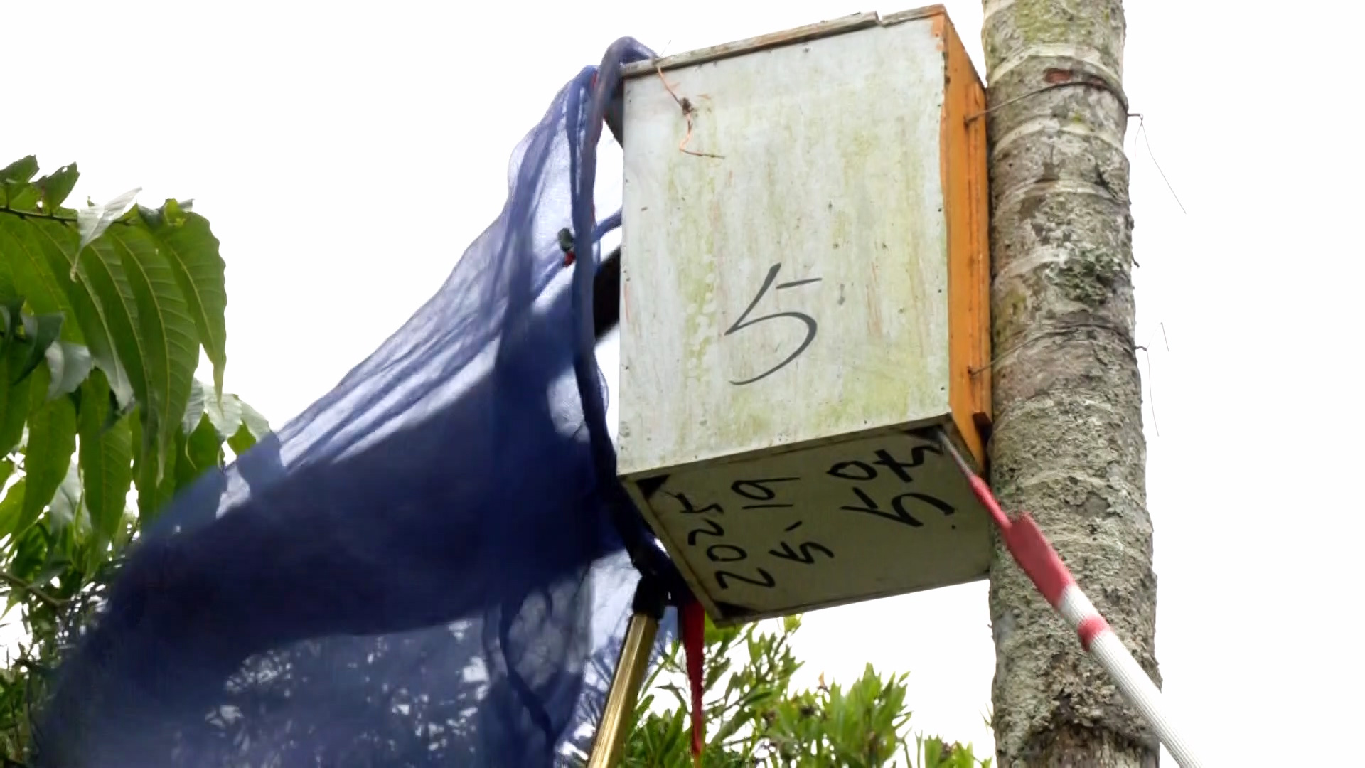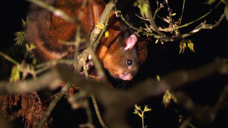 台中霧峰桐林社區,進行生態調查,利用長桿連結攝影機,探查人工巢箱內的飛鼠。桐林社區有穩定的大赤鼯鼠族群居住,調查團隊捕捉後,掃描晶片確認身份,進行健康檢查。