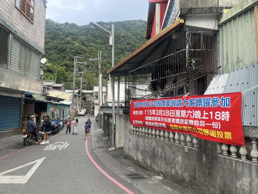 在當天3/28投票前,宜大石礦在部落張貼告示及布條,內容提及當天出席或代理、委託投票者,「事後每家戶贈送禮品一份,價值新台幣貳仟元整」、「鼓勵投票當天出席者贈送家用物品一份」。