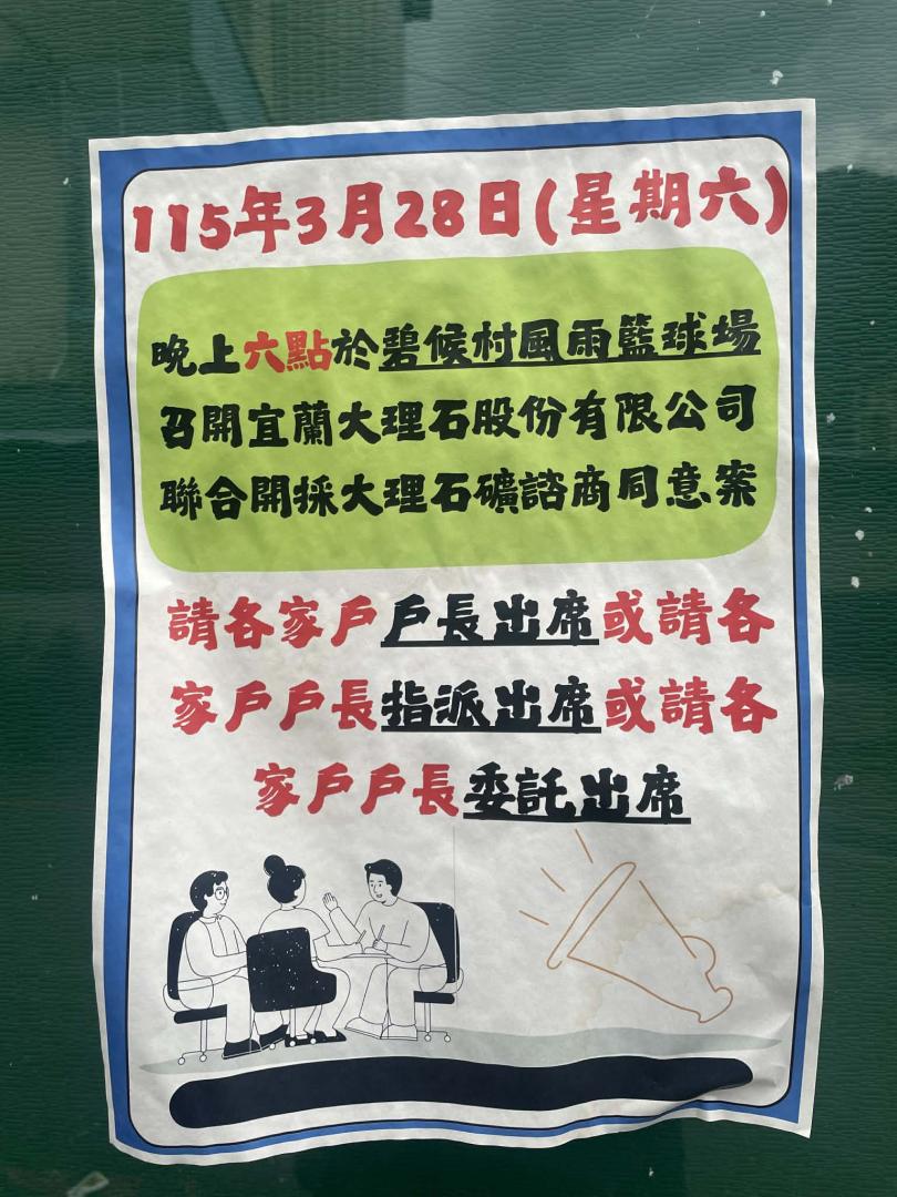 週六(3/28)傍晚六點,宜蘭縣南澳鄉碧候村碧候部落(Pyahaw),對宜蘭大理石股份有限公司(宜大石礦)提出的採礦計畫,辦理諮商同意投票,最後以多數票同意通過開發案。