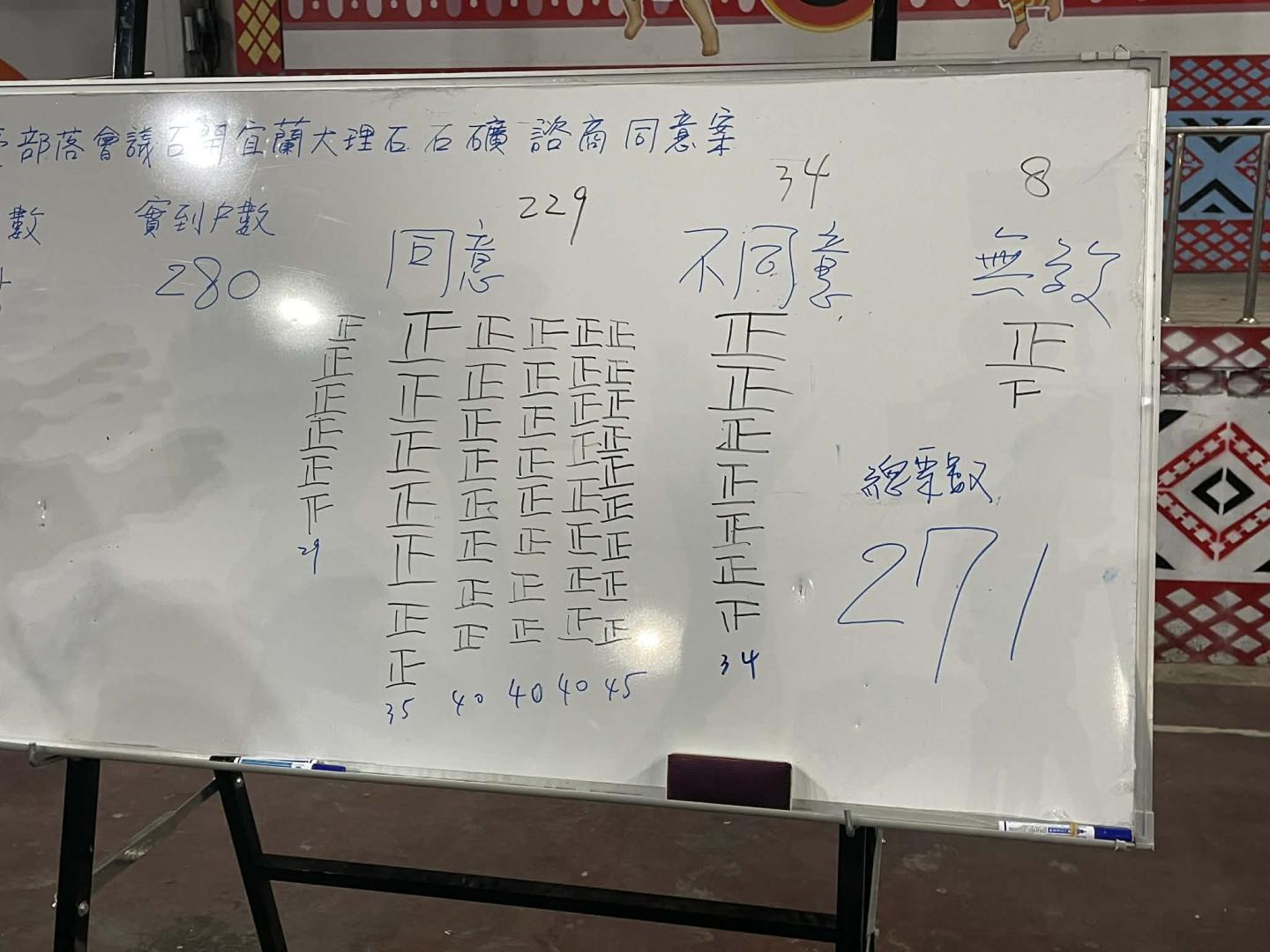 碧候部落在2023年3月,就曾經針對宜大石礦復採舉行諮商同意投票,當時以129票對66票否決開礦計畫。2025年4月,業者再度提出申請,但因出席家戶數不足二分之一而流會。今年3月28日的開票結果,同意229票、不同意34票、無效票8票,投票人數超過部落家戶總數二分之一,宜大石礦開採計畫表決通過。