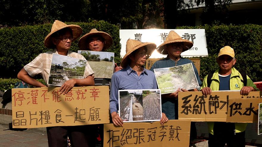 2025年底開始,冬季降雨稀少,政府以頭前溪流域灌區為範圍,推動「頭前溪流域農業系統性節水推廣試辦計畫」,突然強制停灌農地,讓新竹農民來到農業部抗議。