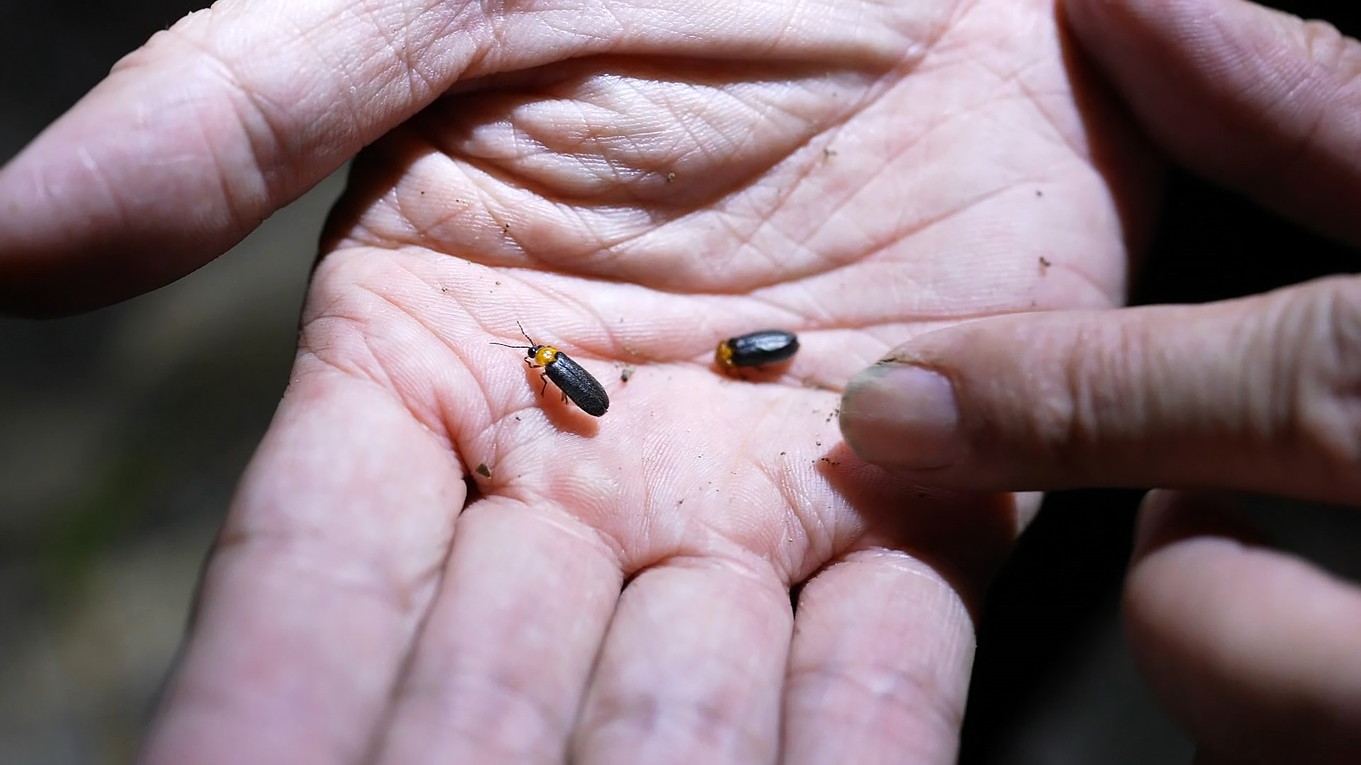 研究團隊在蓮華池調查到14種螢火蟲,圖為黑翅晦螢的雄蟲和雌蟲。