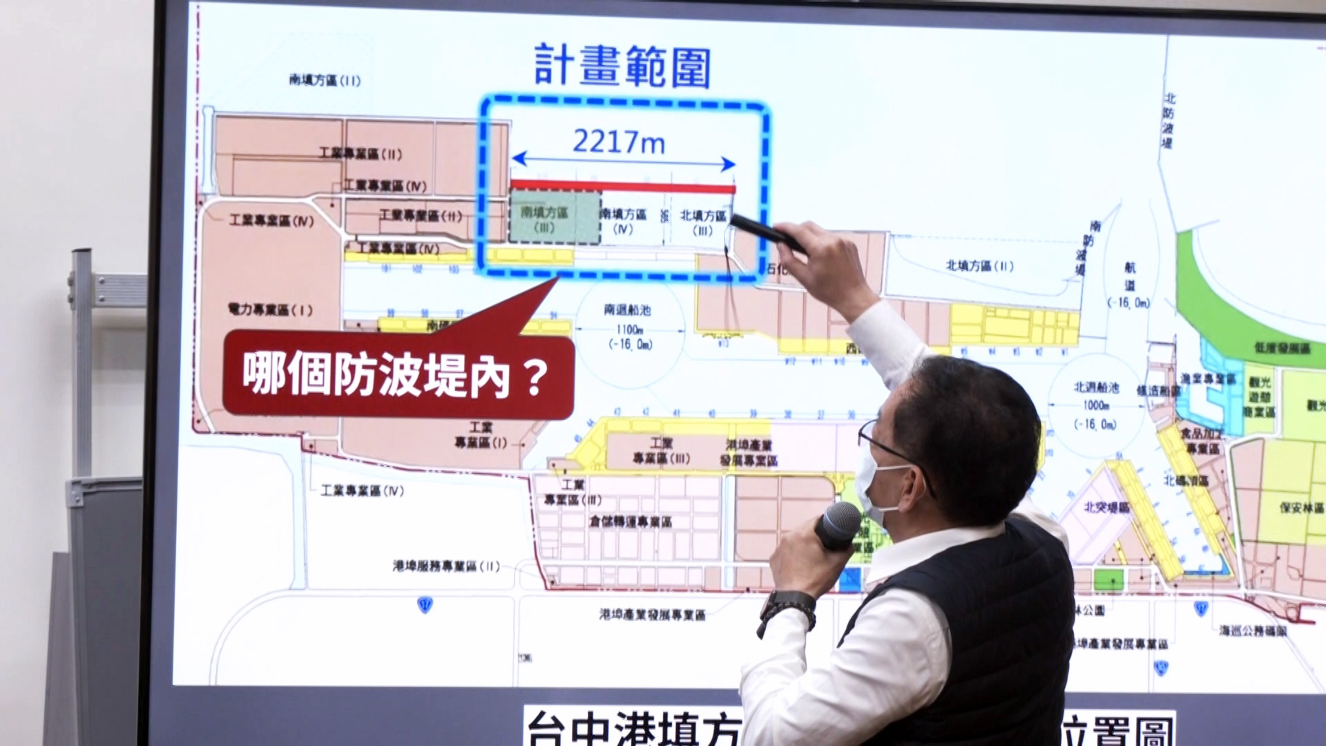 台中港務分公司回應,填海區域兩側各有東西向的兩道防波堤,填海的範圍確實是在既有防波堤內,是在做港區工程。