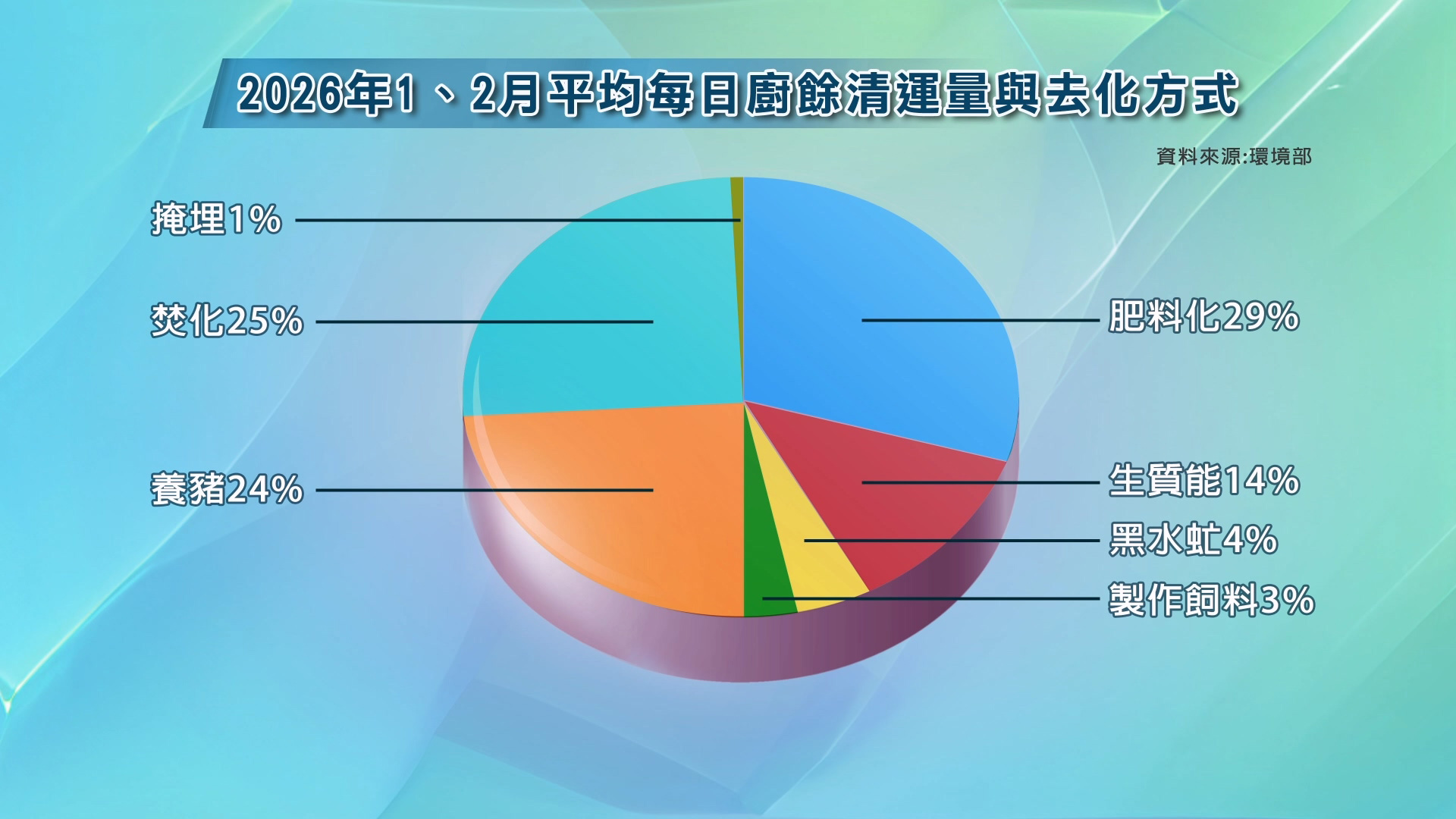 2026年1、2月平均每日廚餘清運量與去化方式,有四分之一送去焚燒。