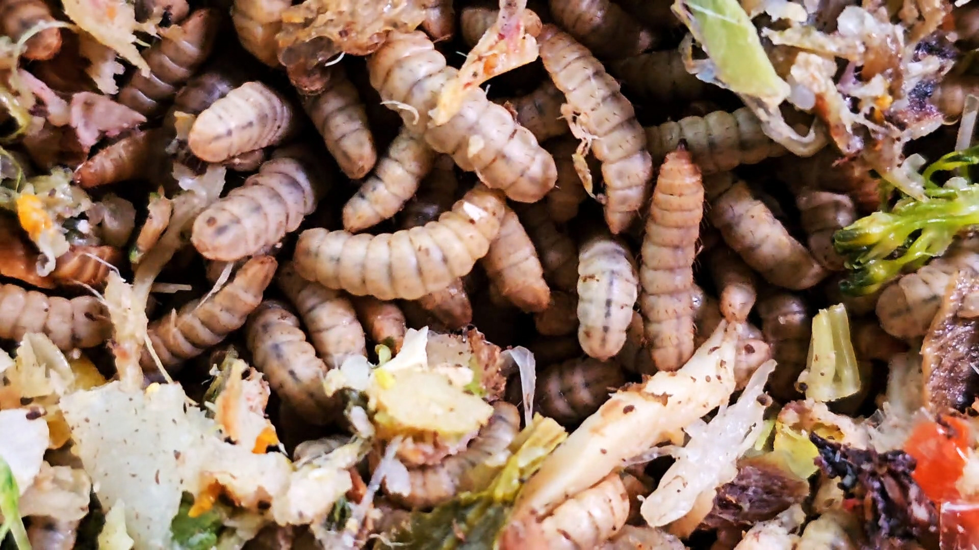 第二個挑戰則是專業人力,飼養黑水虻需要控制溫度、濕度、密度、廚餘破碎大小、餵食量等等,這些都會影響黑水虻的生長。經過不斷摸索,清潔隊員黃百謚才找到適合黑水虻生長的飼養方式。