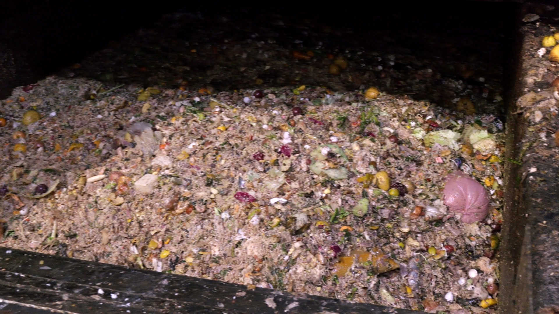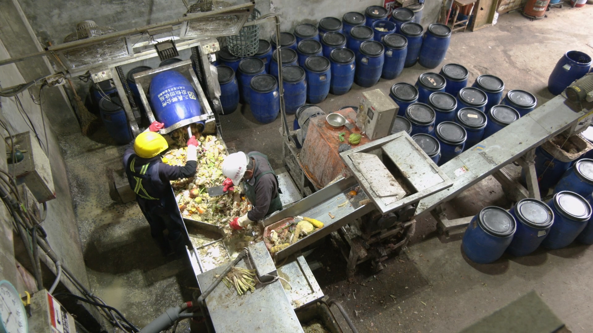 苗栗縣三義鄉一處雲霧繚繞的山邊,四周都沒有住宅,清潔隊垃圾車慢慢開上來,這裡就是三義鄉公所清潔隊飼養黑水虻的地點。清潔隊隊員們將一桶一桶三義鄉的廚餘從回收車上搬運下來。接著把大型的骨頭剔出,如果還有太大塊的根莖類,還要用菜刀先切小塊,最後再用破碎機絞碎和脫水。