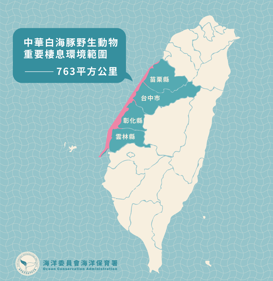 海保署2020年公告「台灣白海豚野生動物重要棲息環境」範圍,橫跨苗栗、台中、彰化、雲林等縣市,面積763平方公里。台中港是台灣白海豚生活的重要熱區之一,但是因為棲地劣化、海洋污染、食源減少、漁業混獲、海上活動和水下噪音,都讓白海豚面臨生存威脅。